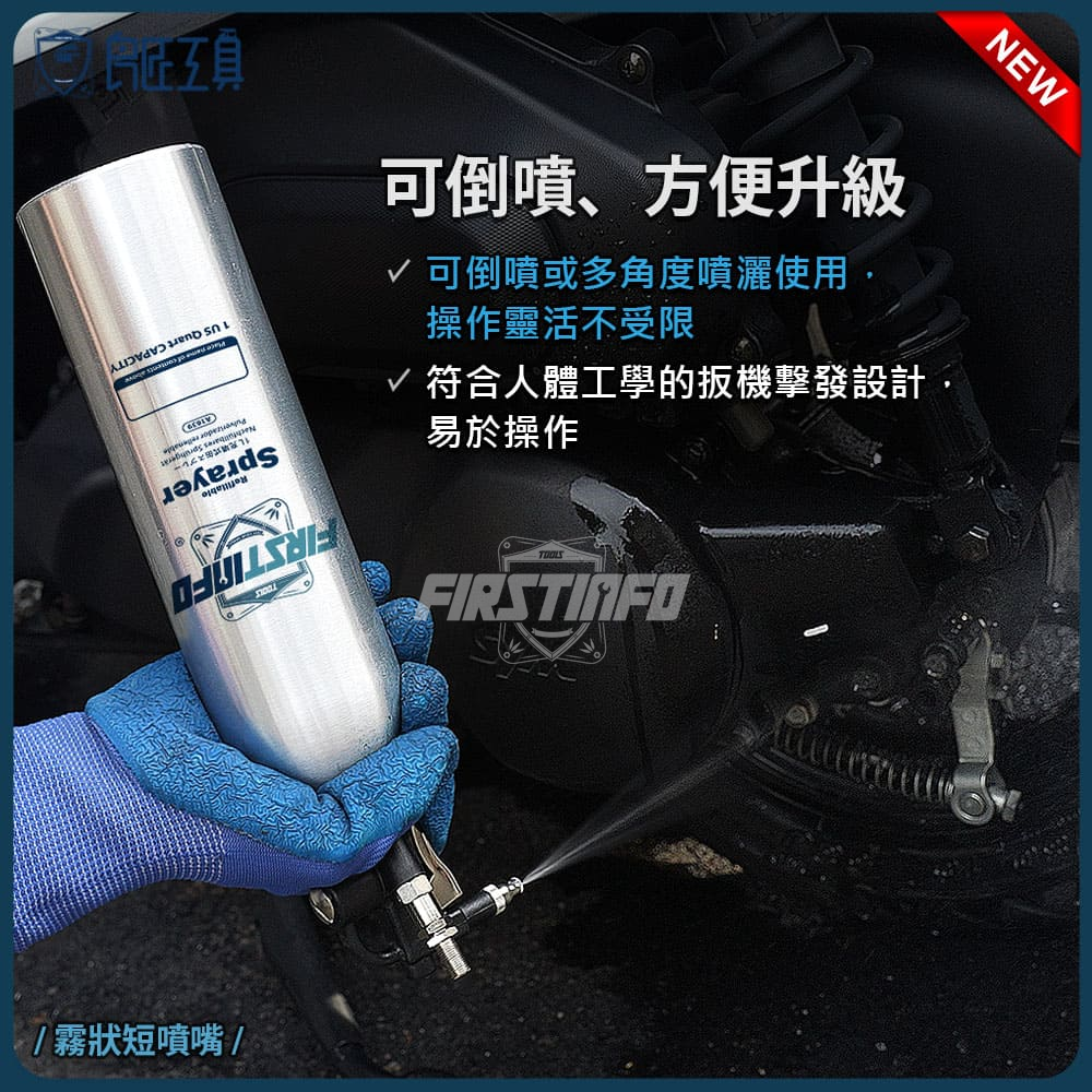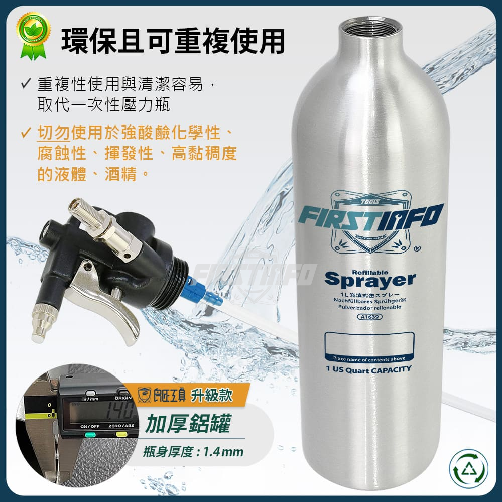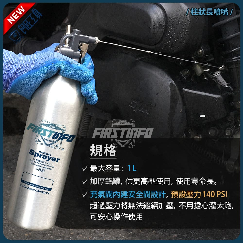 1000ml 新型鋁製可重覆充氣充壓噴霧罐 霧狀短噴嘴+柱狀長噴嘴 - 瓶身加厚款 (140PSI)
